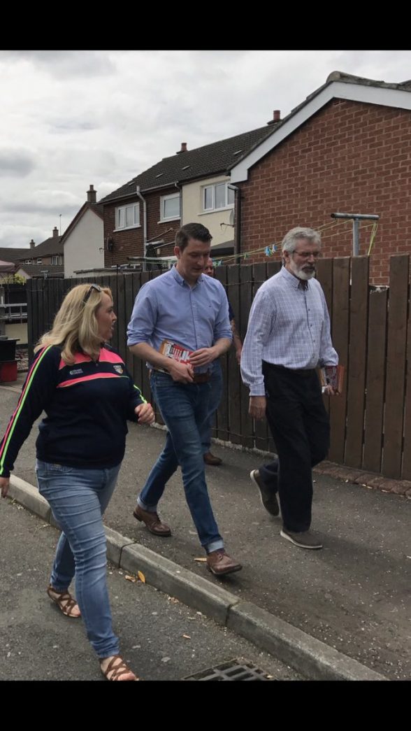 Sinn Fein’s leader in the north Michelle O’Neill, party president Gerry Adams and his deputy Mary Lou McDonald have been among the big hitters who have been out on the hustings in north Belfast to try and get Mr Finucane elected.