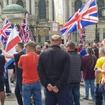 SMOKE moke bombs were thrown and police in riot gear were called in to divide two groups of protesters outside Belfast City Hall today, Saturday, … more